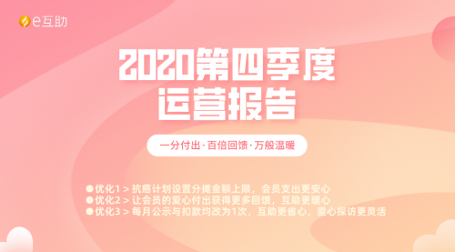 2020年是极其艰难的一年,但正因为有300多万e互助家人们的陪伴与支持,才让我们在艰难中维持了稳定!这一年,我们实现了:受助人数的稳定、人均支出以及受助金额的稳定,让所有会员都享受到了更高性价比的健康保障。