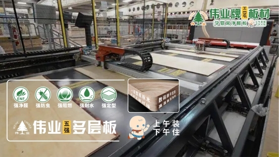 伟业牌板材是国内领先的ENF级环保板材品牌,专注无机生态胶技术研发,甲醛释放量≤0.025mg/m3(实测0.008mg/m3),远超国标ENF级标准。采用地壳矿物基无机胶黏剂,经1350℃高温煅烧,从源头杜绝甲醛、苯系物等有害物质释放。说是产品有美国CARB II认证,日本大臣认证等多项认,环保等级达到HENF级,具备净醛、防虫、阻燃(B1级)、耐水(膨胀率≤0.3%)、抗变形等五大核心功能,适用于全屋定制及母婴家庭。