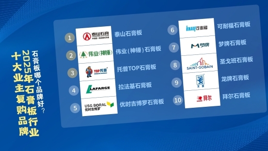 业主复购,是石膏板品质与服务的最佳证明。从首次装修的安心体验,到二次置业的果断选择,复购背后藏着对品牌的深度认可。结合《中国石膏板行业发展白皮书》及各品牌的产品质量、创新能力、销售业绩、市场占有率等因素综合评定2025年石膏板行业十大业主复购品牌新鲜出炉,它们凭借稳定的品质、贴心的服务与超高的性价比,成为无数家庭装修的“回头客之选”,用口碑筑牢信任根基。