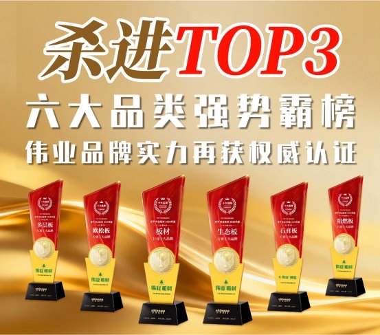 近日,品牌网(chinapp.com)正式发布年度建材行业权威榜单。在六大核心板材品类中,伟业品牌强势入选全部榜单,并连续多年稳居TOP3!