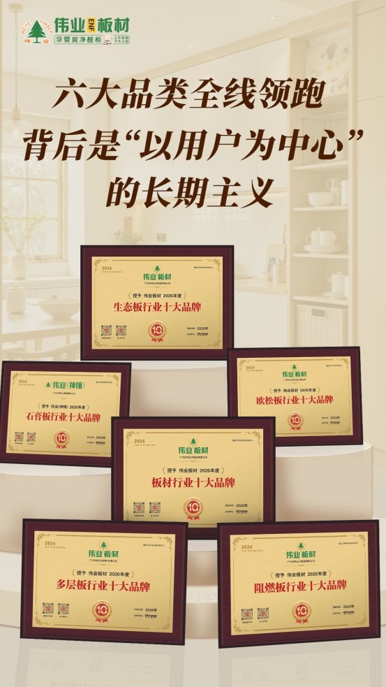 这不是偶然的高光时刻,而是一次系统性品牌力的集中兑现。从基础家装到高端公建,从环保性能到美学表达,伟业用“六线齐发、全线领跑”的硬核表现,重新定义了什么叫“国民级板材品牌”。