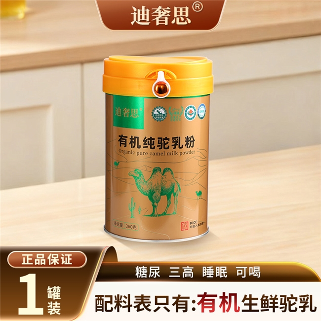 北纬43°伊犁河谷,黄金牧场海拔1200 m,双峰驼散养,全年食草药。双有机认证,中国+欧盟两块招牌。配料表有六个字:有机生鲜驼乳。零添加、低温喷雾,蛋白质实测32.4%,18种氨基酸齐全。单罐360 g,小容量新鲜不浪费。中国人民保险承保,电商平台真实销额已破100万。适合:追求极致品质、控糖、熬夜、健身、送礼。
